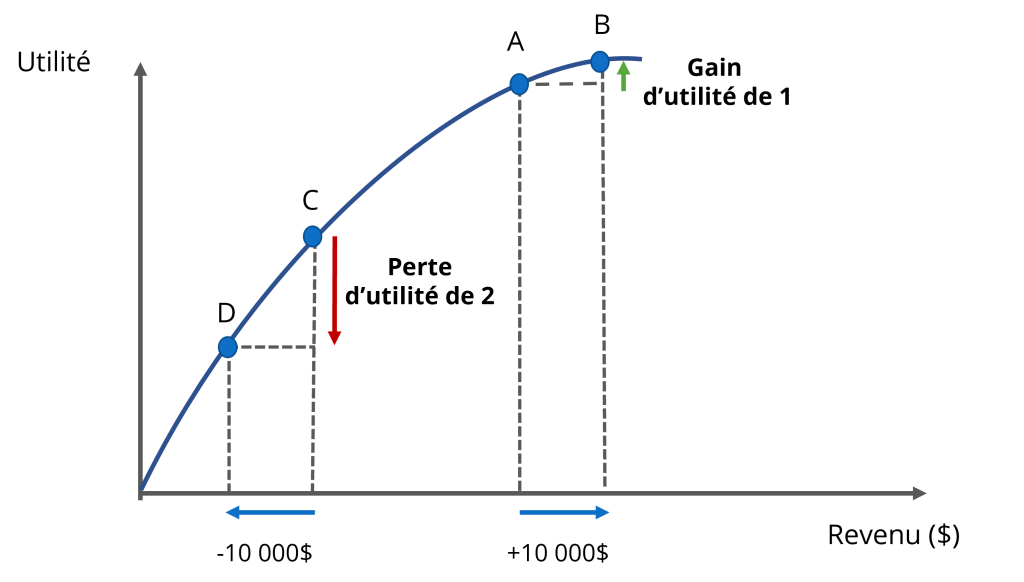 - (*) À partir d’un graphique et d’un projet impliquant deux personnes, élaborer l’exemple d’un projet qui réduirait la richesse collective, mais qui accroîtrait le bien-être collectif.