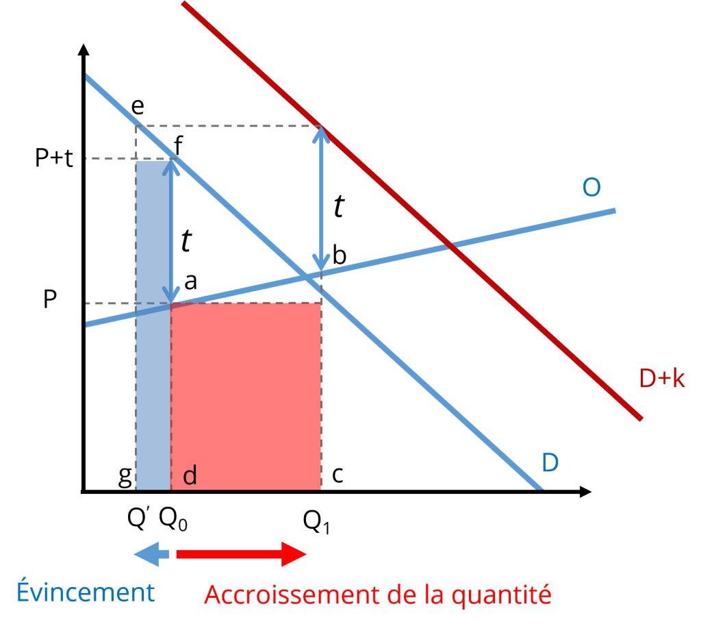 Si la demande additionnelle (k) générée par un projet entraîne une hausse du prix de P0 à P1, la valorisation sociale se fait d’après la règle suivante :