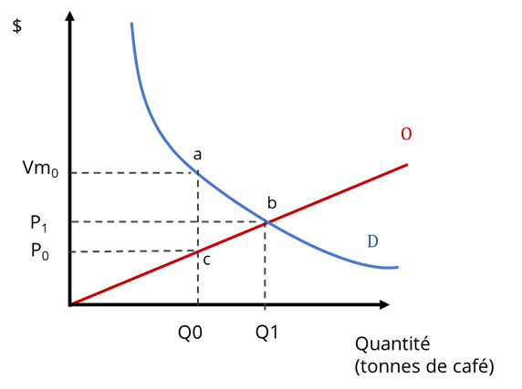 Établissez un cadre d’analyse permettant d’identifier et de valoriser les impacts du projet sur le marché du café. Discutez comment les élasticités déterminent l’effet net dans le marché. Analysez également les autres effets qu’il faudrait prendre éventuellement en compte dans une ACA complète de ce projet.
