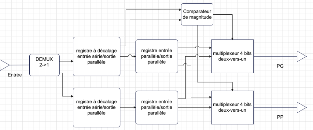 - comparateur de magnitude: deux entrées parallèles de 4 bits: