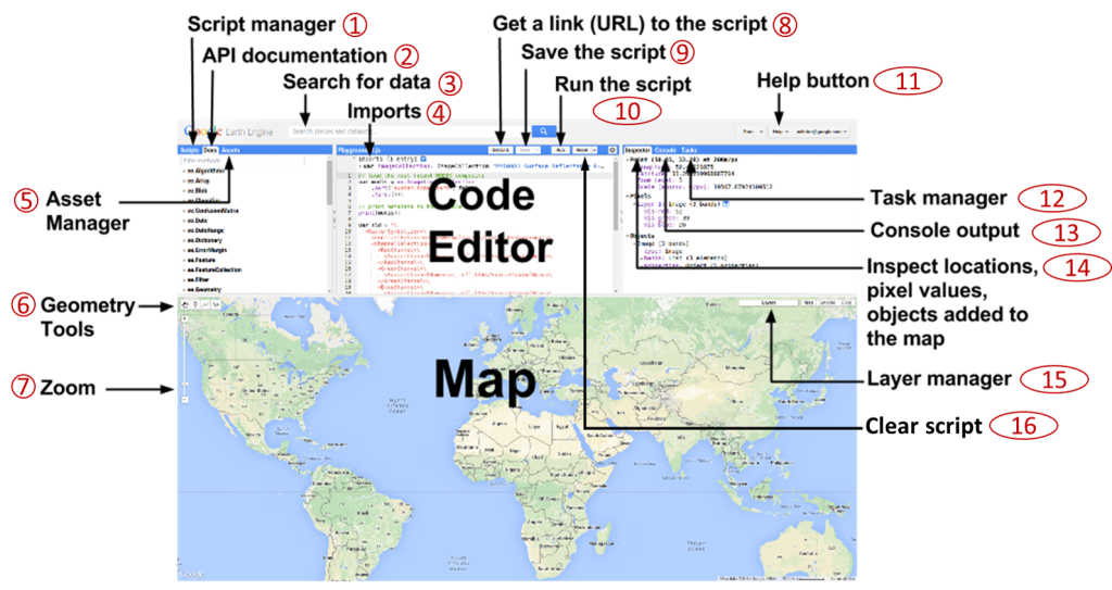 Tableau 1 : Les sections de l’éditeur de code de Google Earth Engine