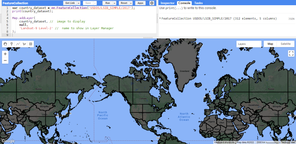 Figure 44 : Éditeur de code une fois la collection « Landsat-9 Level-2, Collection 2, Tier 2 » chargée