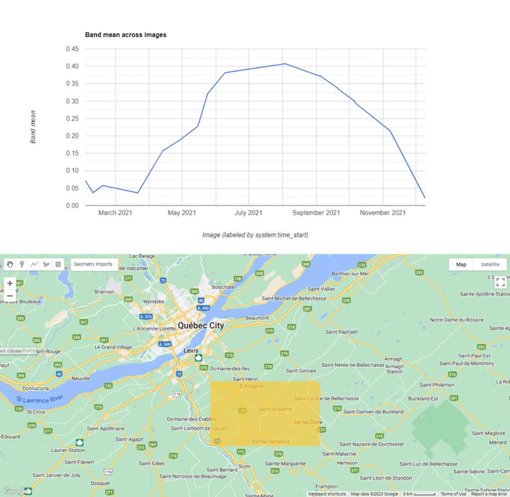 Figure 79 : Génération d’un graphique de l’évolution du NDVI dans une région au sud de la Ville de Québec