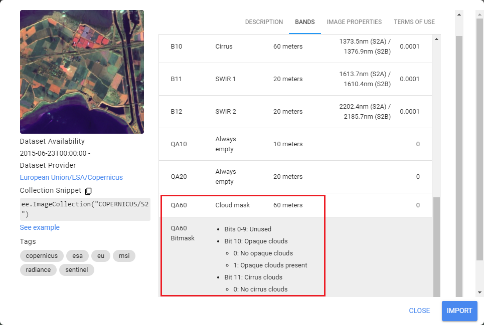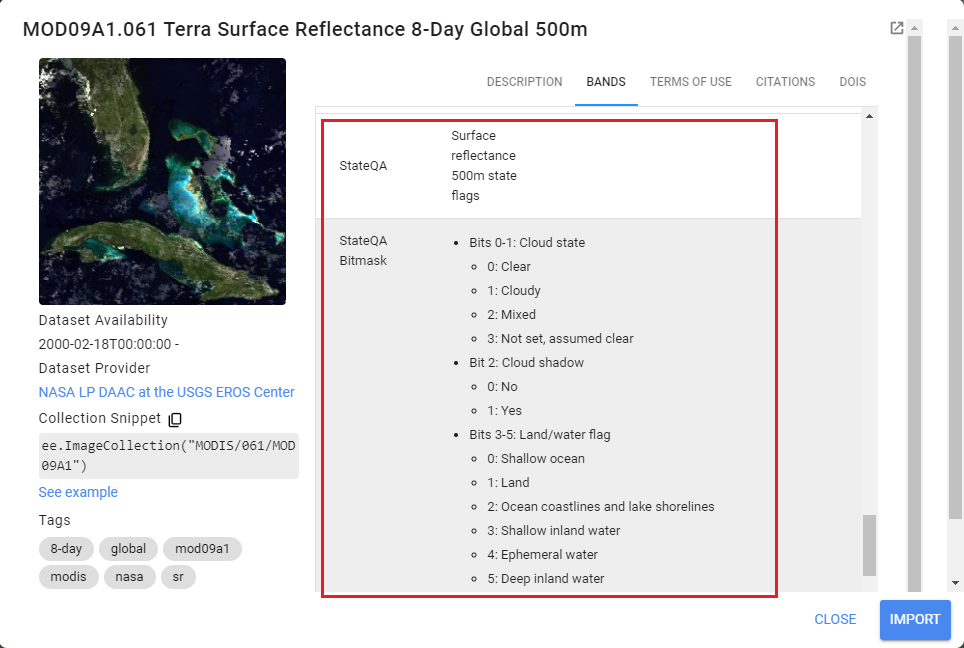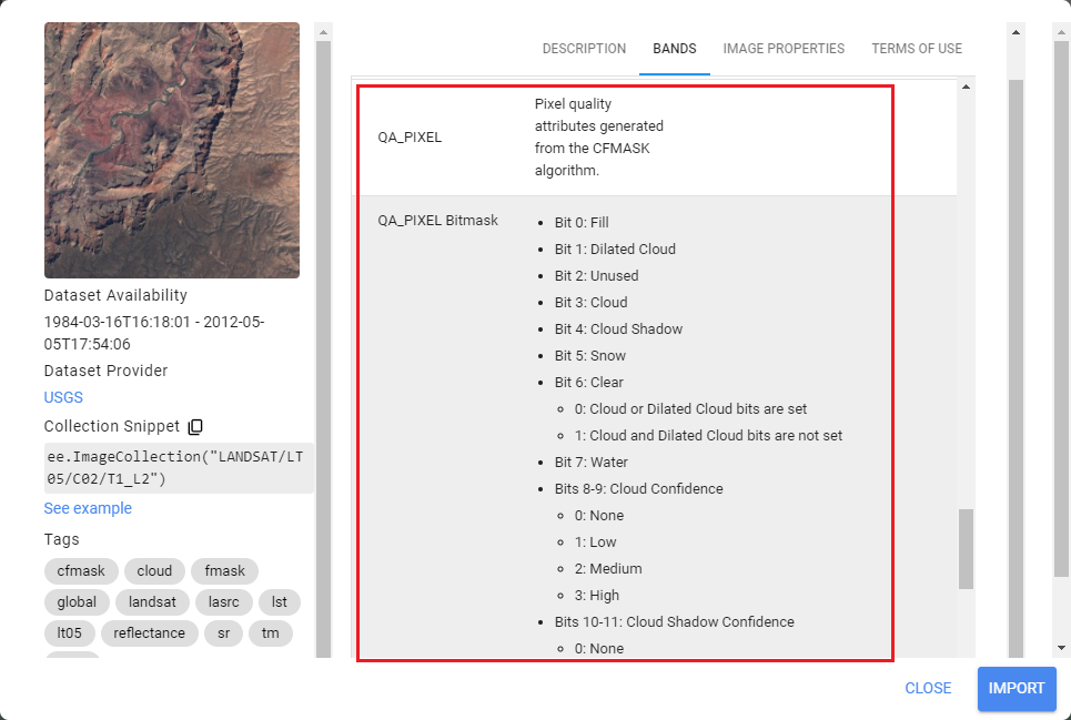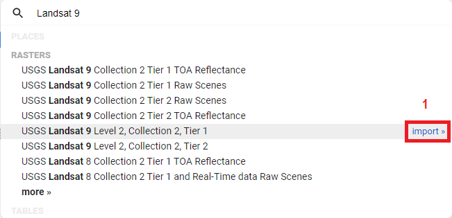 1. Cliquez sur le « import » à côté de « USGS Landsat 9 Level 2, Collection 2, Tier 2 » (Figure 42);