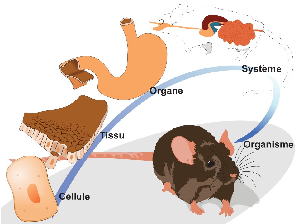 Les phénotypes que nous étudions peuvent être classés dans différents niveaux d’organisation biologique, allant de la molécule jusqu’à l’organisme entier. Un niveau d’organisation biologique représente une unité de complexité biologique : les molécules, les cellules, les tissus, les organes, les systèmes physiologiques et, finalement, l’organisme (figure 2.4). Le niveau organismique est sous-divisé en niveaux morphologique, comportemental et d’histoire de vie. Ces différents niveaux interagissent et s’influencent directement et indirectement les uns les autres et conduisent à l’organisme que nous étudions.