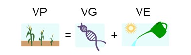 Lorsque nous observons et quantifions de la variation phénotypique, nous pouvons nous demander « qu’est-ce qui cause cette variation? ». Une explication pourrait être que les individus qui diffèrent dans la valeur d’un trait portent des mutations qui affectent le phénotype. Cette variation du phénotype pourrait aussi être le résultat de l’effet de l’environnement sur l’organisme. En fait, il est fort probable que ce soit un mélange des deux : la variation phénotypique résulte très souvent de la variation génétique et de la variation environnementale (Figure 2.6).