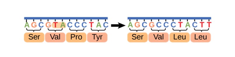 - Clark, M.A., M. Douglas et J. Choi (2018). Mutations can lead to changes in the protein sequence encoded by the DNA [CC-BY]. https://openstax.org/books/biology-2e/pages/14-6-dna-repair