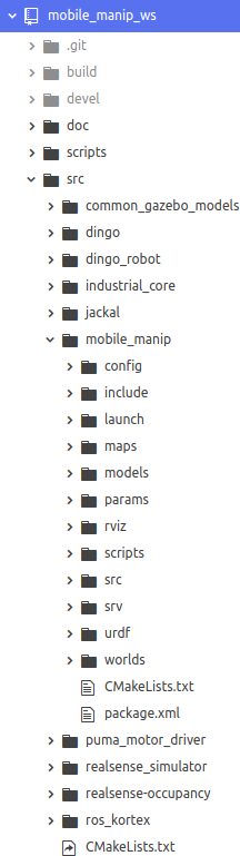 ) et des progiciels spécifiques aux affectations (mobile_manip,realsense_simulator, common_gazebo_models