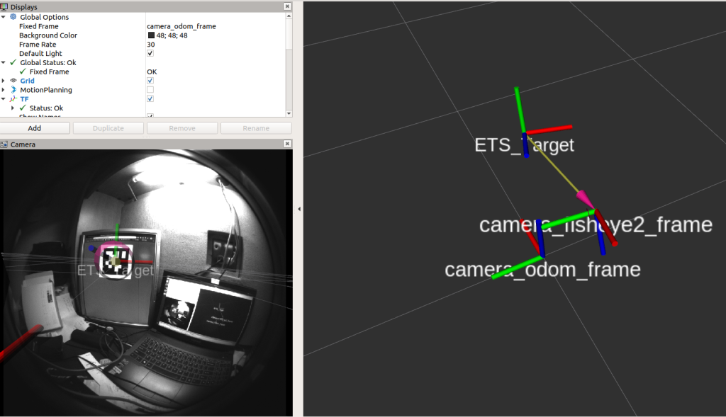 sont utilisés pour définir les relations géométriques fixes entre les parties d’un robot. Vous pouvez utiliser facilement la pose d’un objet détecté par une caméra montée sur votre robot pour générer des commandes appropriées pour les moteurs des roues. Par exemple, en utilisant les informations fournies par la caméra, vous pourriez dire : “Ma caméra détecte une porte à 2 mètres devant, mais elle se trouve à 50 cm de l’axe des roues. Par conséquent, avançons seulement de 1,5 mètre”.