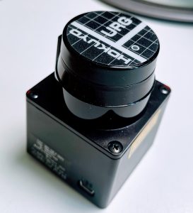 Les capteurs laser peuvent être utilisés dans plusieurs applications liées au positionnement. Il s’agit d’une technologie de télédétection pour la mesure de la distance qui consiste à transmettre un faisceau laser vers la cible et à analyser la lumière réfléchie. Les mesures de distance basées sur le laser dépendent de techniques de temps de vol ou de déphasage. Comme le capteur sonar, une courte impulsion laser est envoyée à un système de temps de vol, et le temps est mesuré lorsque le signal retourne. Un télémètre laser à faible coût populaire en robotique est montré dans la Figure 7-4. (Voir aussi Figure 7-10).