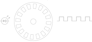 • Un encodeur rotatif typique utilisé dans un robot mobile à roues pour mesurer la distance qu’il parcourt dispose de 40 fentes. La roue du robot sur laquelle ce capteur est monté a un diamètre de 7 cm. Si le capteur émet une impulsion carrée constante de 7 Hz, quelle est la vitesse du robot en cm/s?