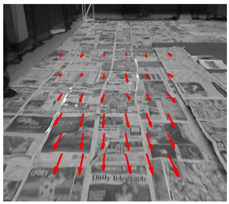 Figure 7-14 : Flux optique détecté indiqué par des flèches rouges, plus la longueur de la flèche est longue, plus le mouvement du patch de pixels est rapide (translation à gauche, rotation à droite)