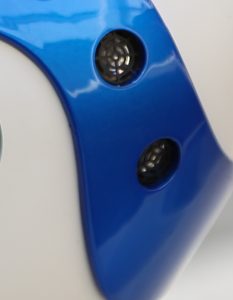 Figure 7-3 : Quatre capteurs Sonar sont intégrés dans la poitrine de ce robot NAO pour l’aider à détecter tout obstacle devant lui. Un capteur tactile est intégré dans sa tête.
