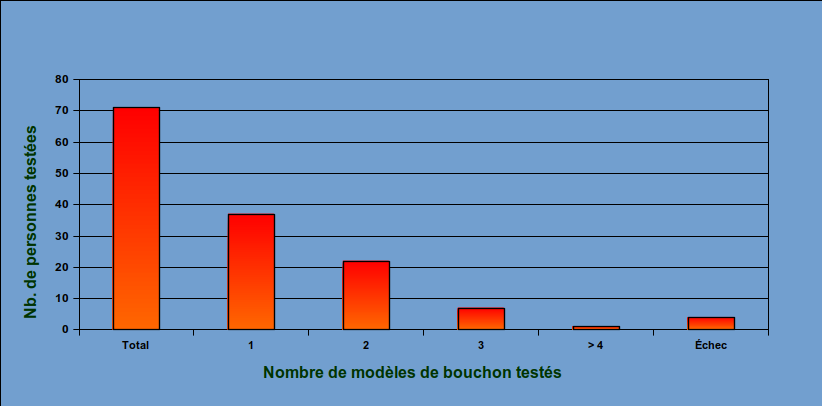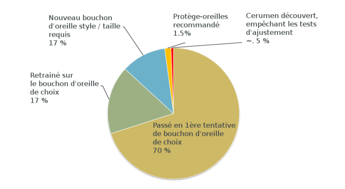 L’impact positif des tests d’adaptation dans les efforts visant à réduire la perte auditive induite par le bruit en milieu de travail est maintenant largement documenté dans diverses industries et dans différents territoires, tel que décrit dans ce chapitre, ainsi que dans Berger et al., (2008), Hager et Smith, (2010), et Witt (2006, 2007a, 2007b, 2008). De plus, des résultats publiés récemment aux États-Unis et en Australie démontrent l’efficacité des tests d’ajustement dans les PPHR professionnels. Donoghue et al., (2015) ont étudié l’introduction de 12 initiatives dans les opérations minières australiennes d’Alcoa en 2006 et ont suivi les résultats pendant sept ans.  Ils ont constaté que les STS confirmés de 10 dB (moyennés sur 2, 3 et 4 kHz) corrigés selon l’âge chez environ 4 500 personnes sont passés d’environ 5,5 % à un peu plus de 1 %.  Leur postulat principal est  que cette réduction est due à l’amélioration de l’éducation et à la mise en œuvre des tests d’ajustement.