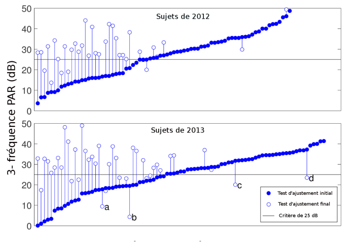 Lorsque les deux oreilles sont testées simultanément, il devient impossible de distinguer si l’un ou l’autre des PIB est mal ajusté.