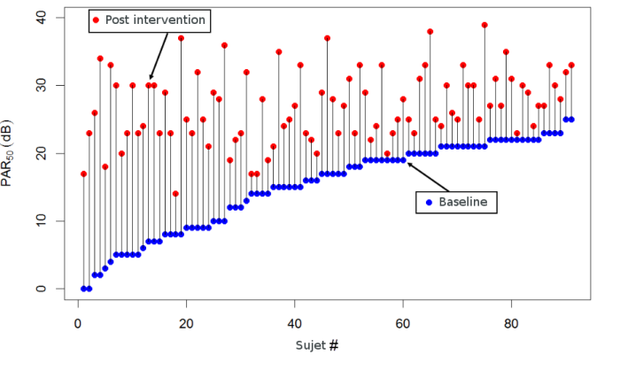 Une autre étude importante a été réalisée par Sayler et ses collaborateurs (Sayler, 2018), via un projet financé par le NIOSH qui a évalué des éléments des PPPAs en utilisant le jugement d’experts et des évaluations objectives de la relation entre les différents éléments du programme et les résultats auditifs, dans 14 différentes usines américaines fabriquant des métaux.  Ils ont constaté que les coûts par personne des PPPAs n’étaient pas un prédicteur significatif des résultats pour la santé auditive, mais que des dépenses plus élevées pour les tests d’ajustement étaient un prédicteur significatif des taux plus faibles de STS non corrigés selon l’âge.