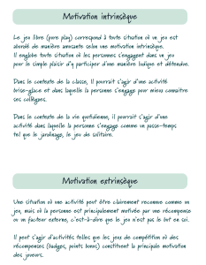 Certains jeux feront davantage appel à la motivation intrinsèque des personnes étudiantes c’est-à-dire à un engagement dans l’activité par plaisir ou intérêt, alors que d’autres seront davantage centrés sur la motivation extrinsèque c’est-à-dire, atteindre des objectifs ou des récompenses (Sanchez, 2023). Whitton (2022) propose les exemples suivants pour illustrer cette distinction :