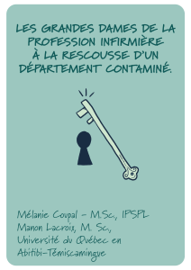 Mélanie COUPAL Mélanie Coupal est professeure à l’Université du Québec en Abitibi-Témiscamingue (UQAT). Infirmière praticienne en soins de première ligne (IPSPL), elle détient une maîtrise en sciences cliniques, un DESS de 2e cycle en soins de première ligne et un DESS de 3e cycle en pédagogie de l’enseignement supérieur. Elle s’intéresse particulièrement aux modalités d’évaluation des apprentissages, au développement du raisonnement clinique et de la métacognition ainsi qu’aux innovations pédagogiques.
