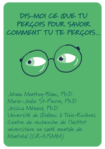 Johana MONTHUY-BLANC, Ph.D Professeure titulaire au département des sciences de l’éducation de l’Université du Québec à Trois-Rivières (UQTR), Chercheure régulière au Centre de recherche de l’Institut universitaire en santé mentale de Montréal, responsable et co-gestionnaire de l’unité de recherche transdisciplinaire Loricorps de l’UQTR. Son expertise se situe au niveau des troubles perceptuels relatifs aux troubles des conduites alimentaires et des perceptions du soi physique via la santé virtuelle au Canada en e-Santé et en e-Éducation à la santé.